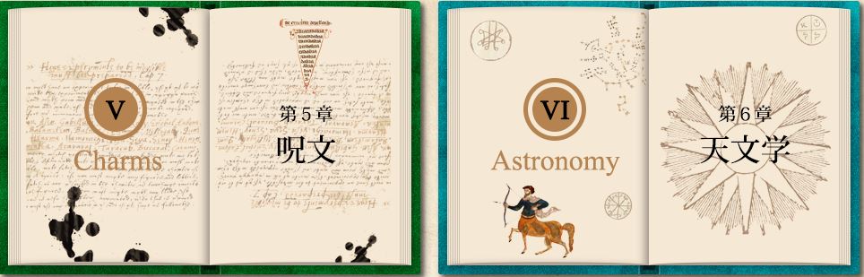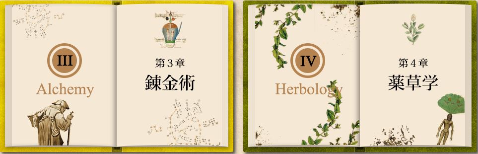 こちらの章では、賢者の石の作り方が記された数メートルもある巻物『リプリー・スクロール』や、歴史上もっとも美麗な錬金術解説書といわれる書籍『太陽の輝き』などを展示される予定です。