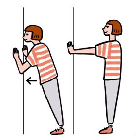 立った状態で、壁に両手をつけて、腕立て伏せをする感じです。