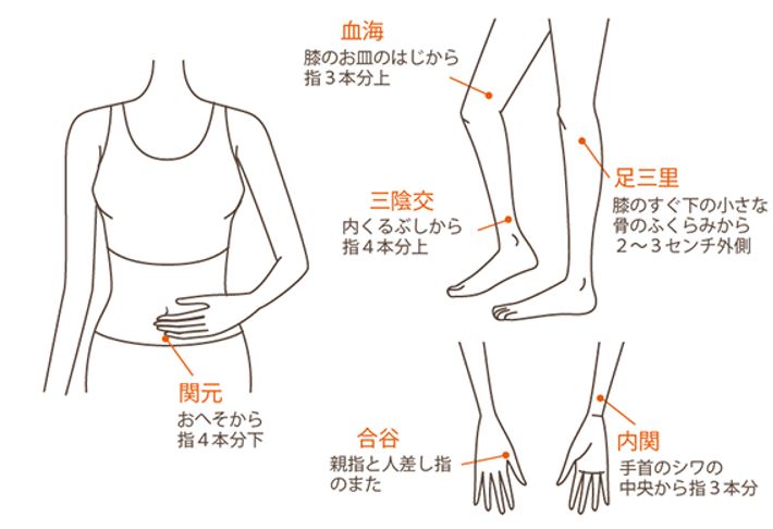 下の画像で紹介されているツボを温めたり、押してみてくださいね。