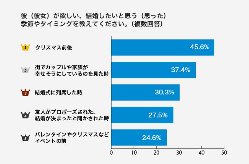 彼(彼女)が欲しい、結婚したいと思う(思った)季節やタイミングを教えてください。