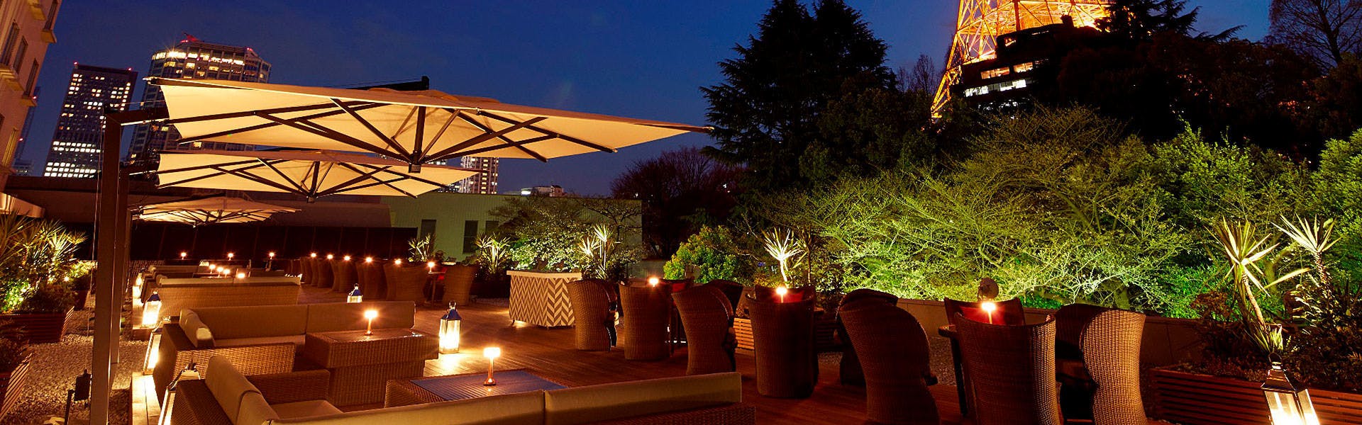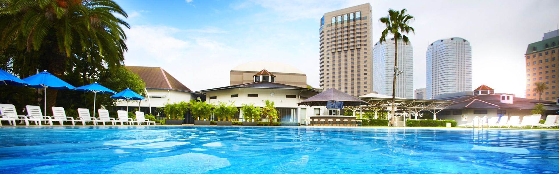 19世紀のヨーロッパの庭園をイメージした都内随一の広さを誇るガーデンプール。ラグジュアリーな空間が、都内にいながらリゾート気分が味わえる人気のプール。