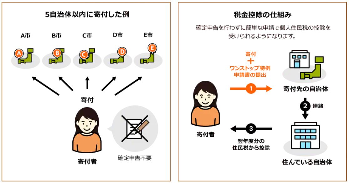 ふるさと納税先の自治体が、1年間で5自治体までであれば、この制度を活用できます。