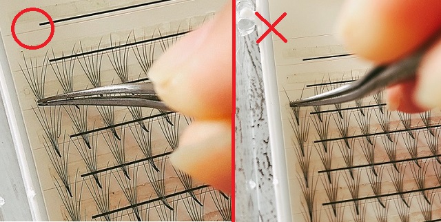 マツエクは、繊細なので容器から出す時は上を引っ張らず、根元を持つようにしましょう。